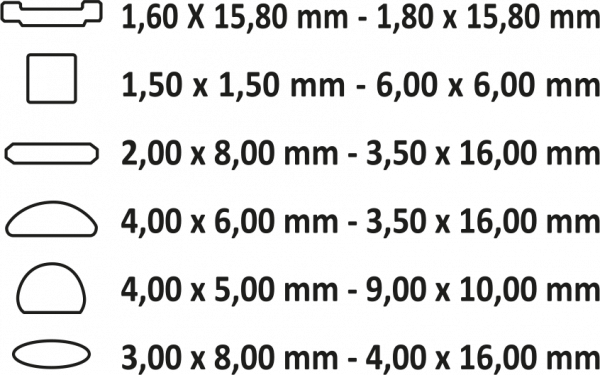 Malzeme: Düşük karbonlu çelik, Yüksek karbonlu çelik, Paslanmaz çelik, Bakır, Alüminyum